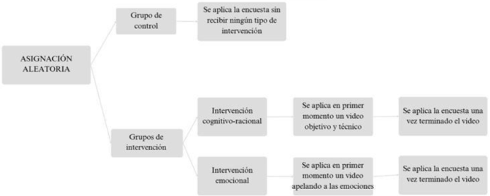 por el tipo de intervención audiovisual recibida (cognitivo-racional o emocional).